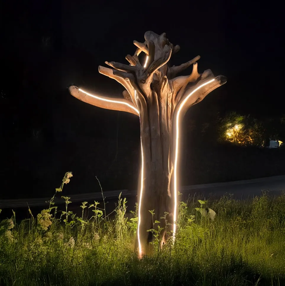Дерево обращается к высшим силам — не словами, а самим своим существованием. «Воззвание к небу» — это не просьба, а признание: мы часть чего-то большего. В вечернее и ночное время вы можете включить подсветку и созерцать смыслы в новом прочтении.