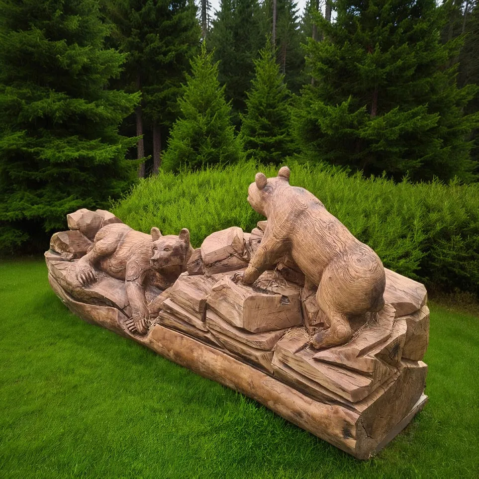 Из дерева рождаются две фигуры — медведица и её сын, как символ нерушимой связи между поколениями. Здесь сила — в мудрости. В том, как мать просто находится рядом. Как её присутствие становится опорой. Она учит без слов: быть, чувствовать, жить в гармонии с природой.